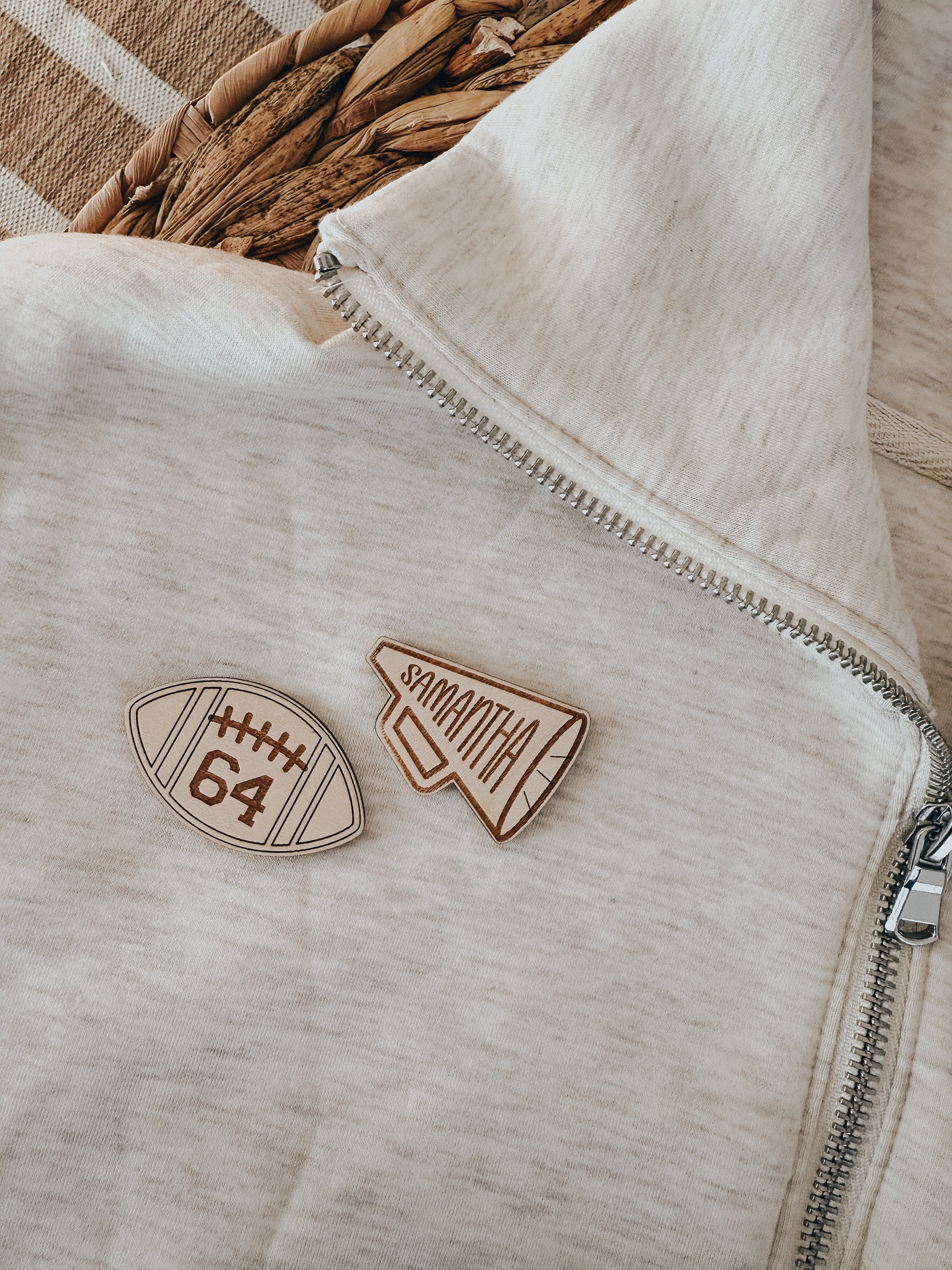 Cheer on the home team with your own custom wood button. Make a statement with a fun wood pin! Looks great pinned to your shirt or a bag!